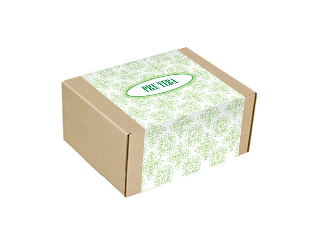 Papierová kartónová krabička s originálnym dizajnovým rukávom vyrobená z pevného materiálu, naplnená drevitou vlnou.