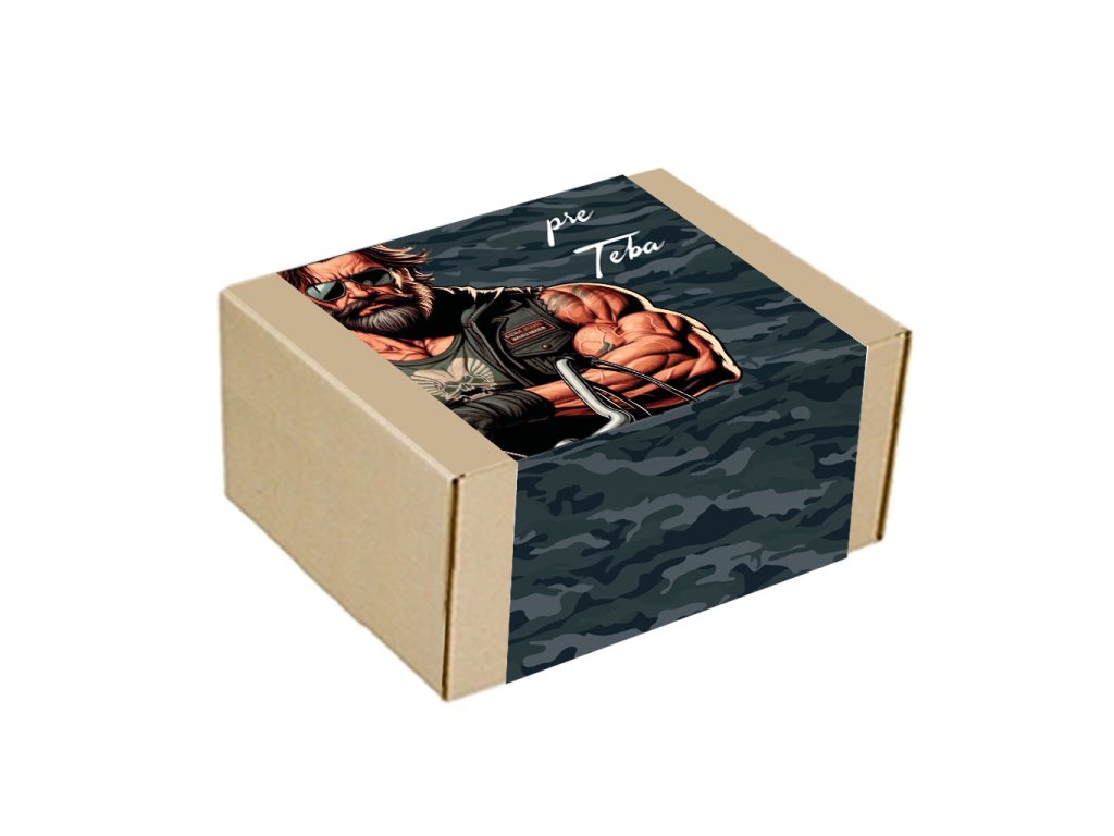 Papierová kartónová krabička s originálnym dizajnovým rukávom vyrobená z pevného materiálu, naplnená drevitou vlnou.