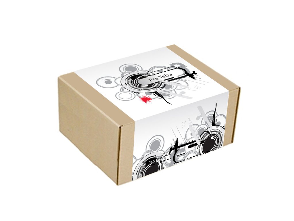 Papierová kartónová krabička s originálnym dizajnovým rukávom vyrobená z pevného materiálu, naplnená drevitou vlnou.
