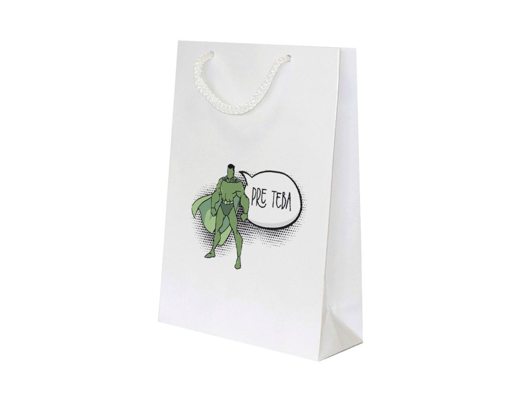 Papierová laminovaná darčeková taška s originálnym dizajnom a vyrobená z kvalitného materiálu.