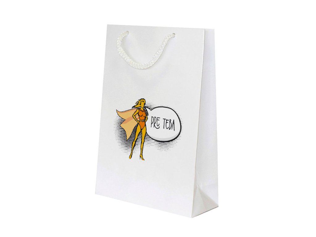 Papierová laminovaná darčeková taška s originálnym dizajnom a vyrobená z kvalitného materiálu.