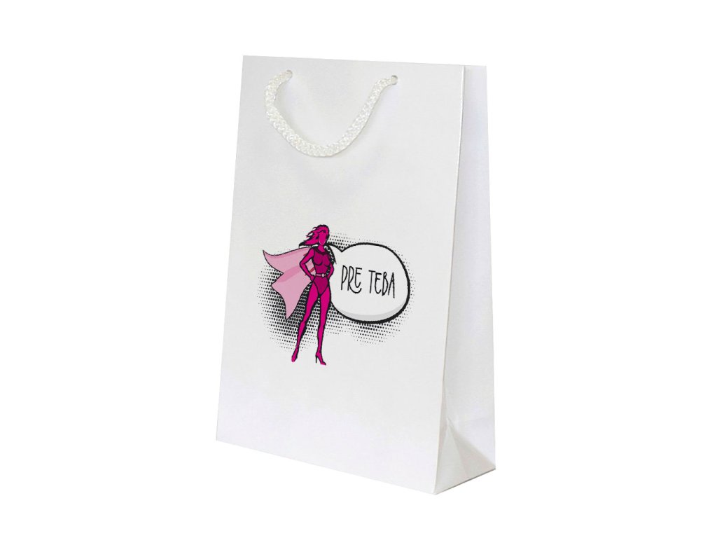 Papierová laminovaná darčeková taška s originálnym dizajnom a vyrobená z kvalitného materiálu.