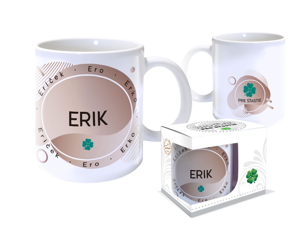 Spracovanie: keramický hrnček 300ml s kvalitnou sublimačnou potlačou, ktorá odolá aj umývačke riadu. Hrnček môžete použiť aj v mikrovlnnej rúre. Rozmer hrnčeka bez krabičky ø 80 x 95 mm. #ShowMore# Mená: Erik, Eriček, Ero, Erko.Buďte prvý, kto napíše príspevok k tejto položke.