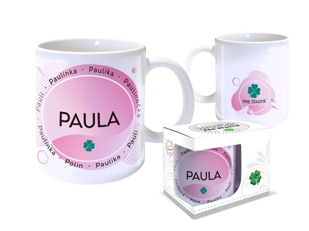 Spracovanie: keramický hrnček 300ml s kvalitnou sublimačnou potlačou, ktorá odolá aj umývačke riadu. Hrnček môžete použiť aj v mikrovlnnej rúre. Rozmer hrnčeka bez krabičky ø 80 x 95 mm. #ShowMore# Mená: Paula, Pauli, Paulínka, Paulika, Paulínočka, Pólin.Buďte prvý, kto napíše príspevok k tejto položke.