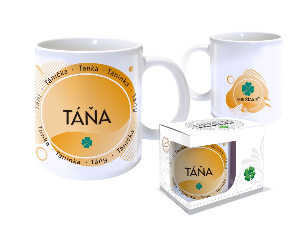 Spracovanie: keramický hrnček 300ml s kvalitnou sublimačnou potlačou, ktorá odolá aj umývačke riadu. Hrnček môžete použiť aj v mikrovlnnej rúre. Rozmer hrnčeka bez krabičky ø 80 x 95 mm. #ShowMore# Mená: Táňa, Táni, Tánička, Tanka, Táninka, Tány.Buďte prvý, kto napíše príspevok k tejto položke.