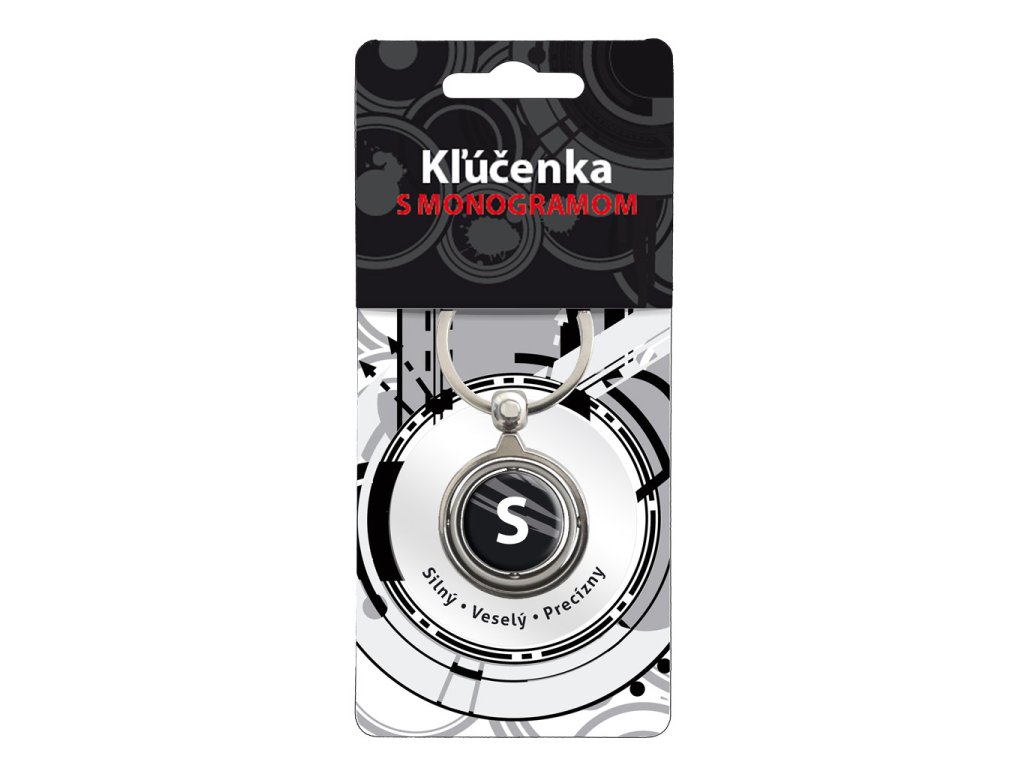 Kovová kľúčenka s otáčavým vnútrom. Priemer vnútorného kruhu 22 mm a vonkajšej časti prívesku 33mm.