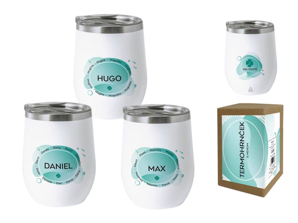Spracovanie – dvojstenný nerezový vákuom izolovaný hrnček s plastovým viečkom. Dvojstenná konštrukcia, umožňuje vášmu nápoju zostať teplý 4 hodiny a studený 6 hodín. Dodávané v darčekovej krabičke z kraftového papiera. Kapacita 350ml., rozmer termohrnčeka ø 88 x 119 mm.