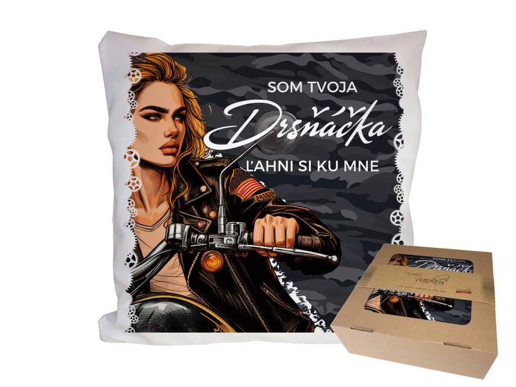 Dekoračný vankúš je dizajnovo zladený aj s ostatnými darčekmi.
